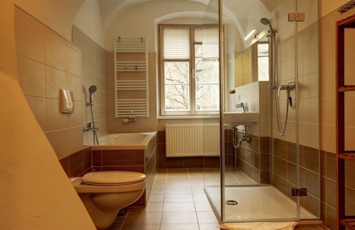 Apartment with 2 bedrooms, bath u add Guest toilet in the old town of Görlitz is located in Altstadt. Apartment with 2 bedrooms, bath u add Guest toilet in the old town of Görlitz provides accommodation, featuring Fireplace/Heating, Child Friendly, Laundry, among other amenities. This Apartment features Fireplace/Heating, Child Friendly, Laundry, to make your stay a comfortable one.