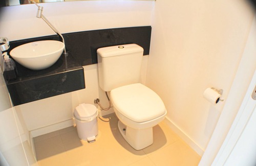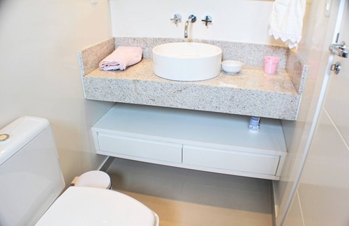 Great differentiated apartment with 2 air-conditioned suites and 01 double bed in each, integrated dining rooms and TV, fully equipped fully equipped kitchen, integrated balcony with charcoal barbecue and sea view. It has 1 extra single bed with auxiliary bed and 1 mattress. Terrace and laundry area with washing machine.