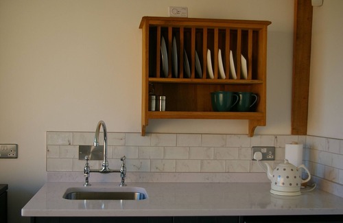 Hoirzon Barn was built in 2011 in a traditional style using reclaimed local stone, brick and timber. Heating and hot water is produced by a biomass boiler, rainwater harvesting is used for non-potable water requirements. Interior features have been created by local craftsmen using antique and reclaimed materials. Located in a working yard, Jim's Antiques Salvage and Timber. Off road and secure parking is available to guests.