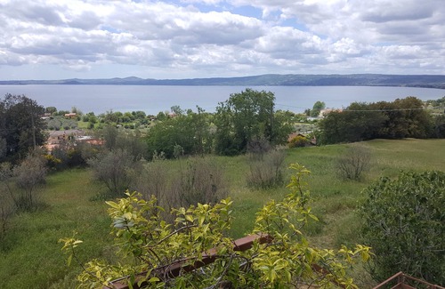 Magnificent view of the lake and the Bolsena Castle. Very bright, independent apartment, surrounded by the countryside, over 80 sqm with garden, located on the first floor, accessible by a staircase, of a terraced house: composed of 1 living room, 1 kitchenette / kitchenette, 2 bedrooms, 1 bathroom, for a total of 4 beds (1 double bed, 1 bunk bed, availability of a double sofa bed on request) 2 terraces, with the possibility to have lunch and dinner under the pergola of the vegetable garden. Fully functional fireplace, TV, with DVD, stereo, washing machine. Dishes, linens, blankets and towels. Availability of consulting books for excursions and local knowledge. E 'was prepared by the owners a specific booklet for consultation, in Italian-English, with suggestions for day trips / visits to places of natural and archaeological interest and guidance on typical local products of the area. The historic town center is a 7-minute walk as well as the nearest supermarket. Pets are accepted. For internet access a "poket wi-fi" is available, to be returned at the end of the stay. From 13.07.2017 the Municipality of Bolsena applies a tourist tax, for the first 7 days, of € 1 per person per day, which must be paid in cash at the time of check-in; among the exempt categories, even children under 10 years.