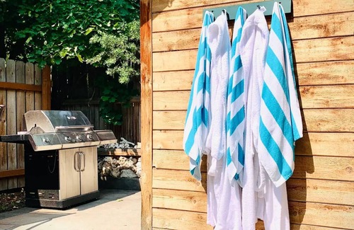 Enjoy access to the patio and bbq grill and perhaps most importantly, the 6 person hot tub and adjacent dry sauna. Soak with soft patio lighting or under the night sky...then wrap up in plush terry robes and slippers which are provided for you.