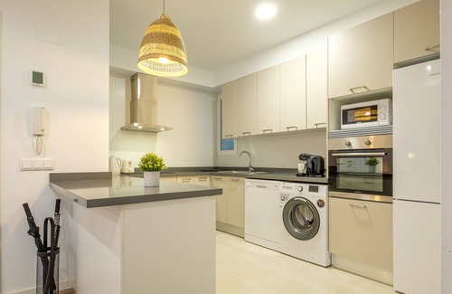 100m2, three-bedroom apartment with two bathrooms, fully stocked kitchen and spacious living room.