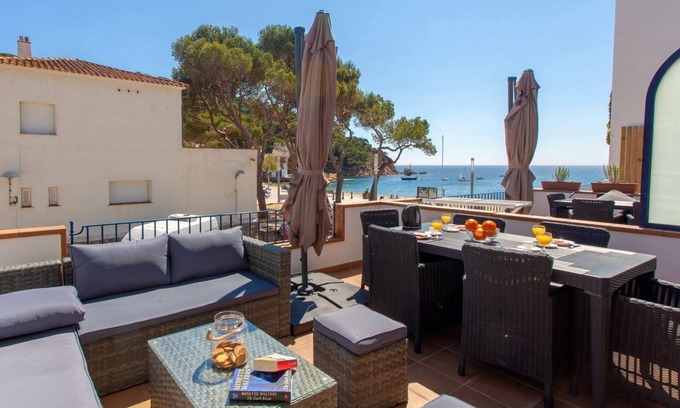 **Nice apartment with a wonderful terrace and a splendid sea view, just 30 meters from the beautiful beach of Tamariu. Enjoy a fantastic vacation at the beach with your family or friends**!