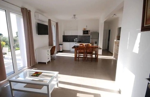 Luxury T3 apartment upstairs with fully equipped private terrace and offering a splendid sea view of the Gulf of Ajaccio to the Sanguinaires Islands.