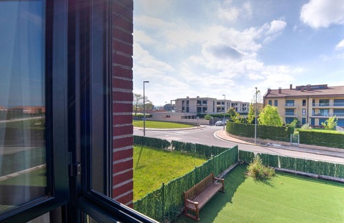 Inside, the apartment is thoughtfully equipped with a fully functional kitchen, washing machine, and free WiFi. Two bedrooms accommodate guests comfortably. The shared landscaped gardens and garage enhance convenience, while the proximity to the golf course (600 m) and restaurants (100 m) ensures a seamless stay. Logroño-Agoncillo Airport is 57 km away, making arrival straightforward for visitors.