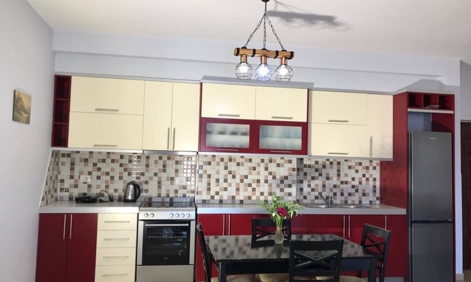 Apartment with to bedrooms, to bathrooms, 3 balconies and living room/kitchen is located in Qender. Apartment with to bedrooms, to bathrooms, 3 balconies and living room/kitchen provides accommodation, featuring Fireplace/Heating, Child Friendly, Internet, among other amenities. This Apartment features Fireplace/Heating, Child Friendly, Internet, to make your stay a comfortable one.