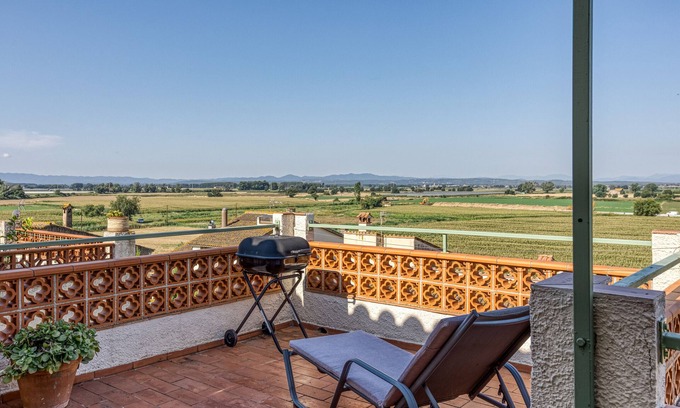 It is a very peaceful place near the sea (L’Escala, Sant Pere Pescador, Torroella de Montgrí, L’Estartit), ideal for cycling trips, enjoying tranquility and the beach. The apartment is very cozy, about 80 square meters, with a 40-square-meter terrace and incredible views from the Pyrenees to Les Gavarres, covering the entire Ter river valley. It is located in a rural village 5 minutes from the beach.