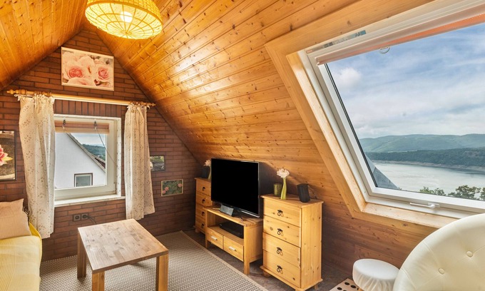 The holiday apartment Wohnung Kranich mit 1 Schlafzimmer is located in Waldeck and overlooks the lake. The 2-storey property consists of a living room, a kitchen, 1 bedroom and 1 bathroom and can therefore accommodate 2 people. Additional amenities include high-speed Wi-Fi (suitable for video calls), a TV as well as a fan. This accommodation features a challenging staircase with a narrow and steep design, which may pose difficulties for some guests.