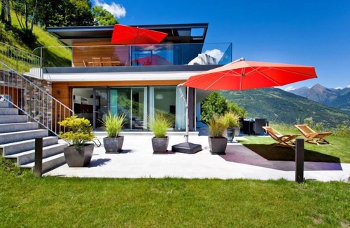 Leontica 11 km from Malvaglia: Charging station for an 11 kW electric car, solar panel operated. Charging station can be used from 8 a.m. to 6 p.m. Costs CHF 20.- / day. >Winter: In case of heavy snow precipitation must park at public parking 500m. Very modern, beautiful, comfortable 2-family house "Zenkei", 922 m a.s.l., surrounded by trees and meadows. 2 apartments in the residence. Above Nucleo di Leontica, in the district Valle di Blenio, in a secluded, quiet, sunny position, 500 m from the edge of the forest, in a cul-de-sac, in the countryside, south-east facing position. Private: terrace, garden furniture, barbecue. In the house: WiFi, sauna (extra). Table tennis, storage room for bicycles, storage room for skis, central heating system, washing machine, tumble dryer (for shared use). Motor access to the house. (15 steps). Parking at the house, in winter 500 m public parking. Grocery 2 km, supermarket 6 km, restaurant 300 m, bus stop "Leontica Chiesa 133" 600 m, railway station "Biasca FFS - SBB" 18 km. Walking paths from the house 50 m, chair lift 800 m. Nearby attractions: Castelli di Bellinzona UNESCO, Chiesa di Negrentino, Archivio Fotografico Donetta, Castello di Serravalle, Museo della Valle di Blenio, Splash & Spa. Well-known ski regions can easily be reached: Nara, Campo Blenio, Campra, Airolo. Well-known lakes can easily be reached: Lago di Luzzone, Lago Retico, Lago Maggiore (Locarno), Lago di Lugano. Hiking paths: Valle di Blenio, Nara, Val Malvaglia, Lucomagno, Passi alpini. Please note: baby equipment on request (extra).