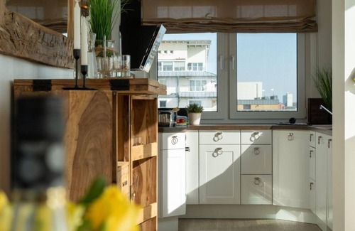 Apartmenthaus "Kiki", Penthaus-Wohnung "Ausguck 21" is located in Steinwarder. Apartmenthaus "Kiki", Penthaus-Wohnung "Ausguck 21" provides accommodation, featuring TV, View, Fireplace/Heating, among other amenities. This Apartment features TV, View, Fireplace/Heating, to make your stay a comfortable one.