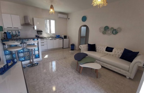 Nestled in Djerba Ajim, this 1-bedroom, 1-bathroom vacation home brings it all within your reach. Fans of nature and the outdoors will love being 34 minutes by car from Sidi Mehrez Beach and 26 minutes from Essaguia Beach. Guellala Museum is an easy 14-minute walk away or make quick work of the 16-minute drive to Djerbahood.
