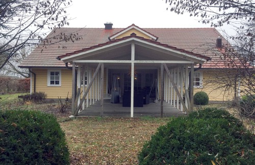 Welcome to our Schwedenhaus on Rügen!Equipped for up to 6 people. (ideal for 4 people). The house has a brand new fitted kitchen with dishwasher, freezer, 4-ring ceramic hob, oven, etc. There is also a very nicely equipped bathroom with shower (additional rain shower head) .Other rooms: Gr. BEDROOM. with double bed, small BEDROOM. with bunk bed, possibility of extra bed over gr. Sofa bed in the living room, 1.6 x 2 m lying area. Pretty, cozy living room and nice, large winter garden. Of course, there is also a flat screen TV, stereo and terraces in the garden. The huge garden (approx. 650 m²): Its old stock of trees (e.g. large pine trees) and its park-like layout give it a special charm. Opportunities for undisturbed sunbathing!The attraction with games and sports is the newly created sandy beach, which is monitored from early to late summer DLRG. Boat rental in the harbor to get to know one of the most beautiful sailing / fishing areas in Germany. Other highlights: pretty beach promenade (additionally a wooden beach promenade directly past the water), good restaurants, picturesque view of the silhouette of Stralsund, beach chair rental, volleyball court and children's playground on the beach, historic houses, bike paths past beaches and fields. Excellent transport links (water and land) for all kinds of excursions. The for almost 2 million EUR, the new beach is the only sandy beach in Rügen with a south orientation - sunshine from morning to evening. Our house is in a very quiet location and yet directly at the spa gardens Restaurant) and on the beaches. The Schwedenhaus on Rügen is assigned to the four-star category. Kitchen towels are available; Towels for the body (hands / shower) and bed linen (standard size) are not included. The deposit (50 EUR) is to be transferred with the final payment. The entire first floor of our 310 m2 two-family house, in which the great apartment is located on our horse farm, is one of the largest, comfortable apartments in all of Mecklenburg-Western Pomerania with 4 bedrooms (living room / bedroom included). In the spring, a large holiday room in the mare stable will also be finished. B. A hostel can serve children during a summer riding camp. The holiday room offers at a price of 20 EUR / pers. the simple equestrian standard compared to the comfortable holiday home, which you can find shown here.