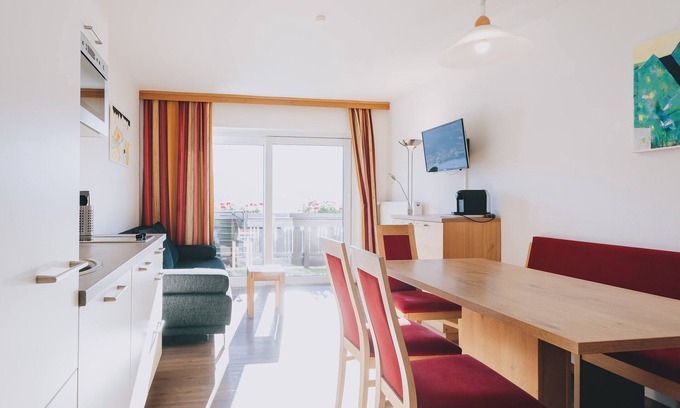 Deluxe Apartment. Mountain view, Balcony. 1 bedrooms. 1 bathrooms. 40sqm. 1 - 3 person. Experience your dream vacation in Zell am See in our Apartments Haus Altenberger - Bergblick and benefit from the best price directly with the owner.The holiday apartment at Apartments Haus Altenberger in Zell am See offers a cozy and well-equipped space for up to three people on 40m². With a blend of traditional charm and practicality, this apartment is ideal for both summer and winter vacations. The open-plan living area includes a sofa bed and a dining space, while the separate bedroom offers a comfortable retreat. The kitchen is practical and fully equipped with a stove, oven, microwave, cooking utensils, and a coffee machine to start your day off right. The highlight of this apartment is the balcony, offering the best mountain view in Zell am See.The bathroom features a spacious shower and everything you need for a relaxing stay, including soap, shower gel, a hairdryer, and towels.In winter, this holiday apartment at Haus Altenberger is the perfect starting point for an unforgettable day on the slopes. The nearest ski lift is just 900 meters away, providing access to 408 kilometers of perfectly groomed slopes – skiing in Zell am See has never been more convenient. In summer, numerous hiking trails start right outside your door, and the imposing peaks of the Hohe Tauern National Park are less than a 30-minute drive away. For mountain bikers, the famous Epic Bikepark Leogang is also nearby, providing a fantastic experience.Salzburg Airport is 77 km from Zell am See and is easily accessible by public transport. There are direct train and bus connections from Salzburg to Zell am See, or you can use Munich Airport (204 km) for international flights.