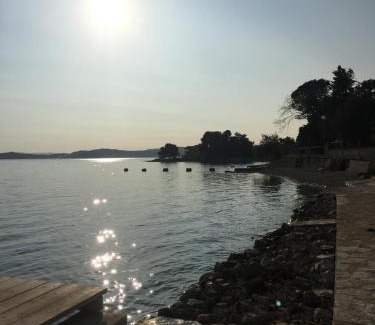 Featuring a garden, Apartments Kika provides accommodations in Sukošan. This beachfront property offers access to a balcony. Free Wifi is available, and private parking can be arranged at an extra charge. Providing a terrace and sea views, the apartment includes 1 bedroom, a living room, satellite flat-screen TV, an equipped kitchen, and 1 bathroom with a shower. A private entrance leads guests into the apartment, where they can enjoy some wine or champagne and fruit. The property has an outdoor dining area. During warmer months, you can make use of the barbecue facilities and eat on the private patio. The area is popular for snorkeling and cycling, and free use of bicycles is available at the apartment. Dječji raj Beach is a 3-minute walk from Apartments Kika, while Kornati Marina is 11 miles away. Zadar Airport is 3.7 miles from the property.