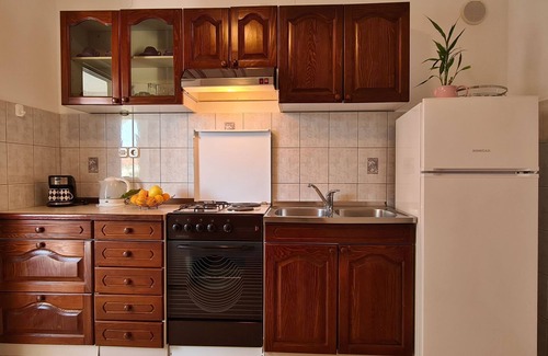 Accommodation The view offers space up to 5 guests. The picture perfect nature and sandy, rocky, pebble, larger rock fragments and concrete slabs beaches are 300 m away. Share the photos of your well-deserved vacation using Internet available for your use. No crowds, no fixed mealtimes and no overcrowded terraces - awake your inner chef using available Grill and indulge in delicious local food. Fill your evenings with lots of laughter and fun whilst sipping local drink(s) on 10 m2 balcony. Nice little added bonus is view of Sea and quiet street.