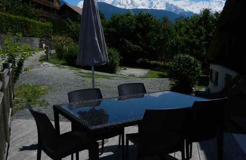 Located in a quiet hamlet with mountain views and Mont Blanc from the terrace !!