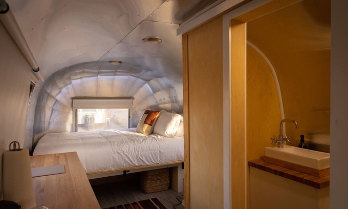 This Airstream features a private bathroom with access to the new bathhouse with private showers, and queen bed that sleeps 2. All Airstreams have pour-over coffee stations. All Airstreams have heat and AC. This unit is not rent-able for towing. This property is not pet or smoke friendly.