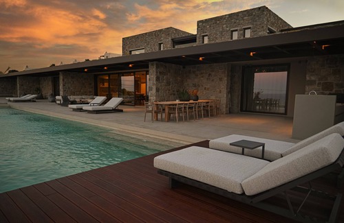 A grand, luxurious modern masterpiece of unparalleled design, set in a stunning location by the sea on Mykonos island. Every inch of this dazzling villa is a celebration of Greek grace embodied in unique architectural forms crafted with locally sourced materials and infused with the salty breeze of the crystal-clear blue Aegean sea.