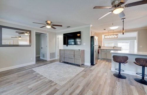 Take a stroll around Lake Apopka, make memories of a lifetime at Disney parks, and enjoy an ideal Sunshine State getaway from this stylish 2-bedroom, 1-bath vacation rental home. Head to Rock Springs Run State Reserve, less than a mile away, to hike scenic trails or put your tube in the crystal blue water! Universal Studios and downtown Orlando are a jaunt away for more excitement. After a day of fun, fire up the grill for family dinner in the backyard and kick back with a sunset cocktail.