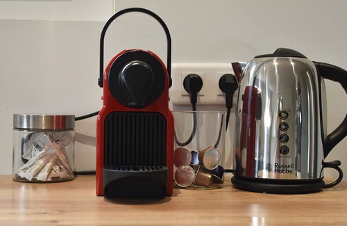 The kitchen is equipped with an oven, a stovetop, and a refrigerator, as well as a coffee maker, an electric kettle, and a microwave. Bathroom amenities include a hair dryer, towels, and toilet paper. And there is a laundromat nearby so you can pack a bit lighter. Other amenities include a sofa bed, bed sheets, heating, and a dining table.