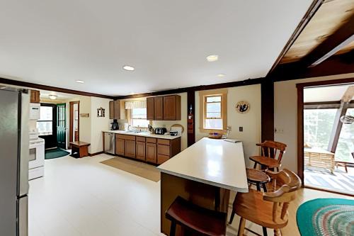 Appalachee Pond Waterfront Cottage offers accommodations in Boothbay Harbor, 3.4 miles from Coastal Maine Botanical Garden. The vacation home has access to a restaurant. The vacation home also offers facilities for disabled guests. Offering a patio with lake views, this vacation home also has a satellite TV, a well-equipped kitchen with a dishwasher, an oven, and a microwave, as well as 1 bathroom with a bath and a hair dryer. There's also a seating area and a fireplace. For guests with children, the vacation home offers a baby safety gate. Guests can also warm up near the outdoor fireplace after a day of cycling. Augusta State Airport is 39 miles away.
