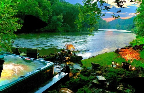 Experience Romance at Appalachian Log Cabin on Tuckasegee River - Pet Friendly, Hot Tub, Wifi, & HBO