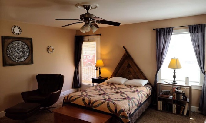 Welcome to our family-owned inn, where cleanliness, relaxation, and comfort are our top priorities. Unwind from the stress of daily life or rekindle your romance while taking in the views from our porch or gazebo. The AT room, located on the first floor with a private entrance, comes equipped with wifi, a smart TV, and a private bathroom complete with towels, basic toiletries, and linens. Guests have access to the beautiful parlor and wraparound front porch with rocking chairs, as well as the entire property. In the common area, you will find a mix of complimentary beverages, sodas, water, coffee, teas, and cocoa.
