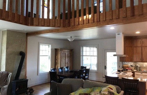 Spacious comfortable 1st level with queen sleeper sofa and full bath. Stereo receiver, TV, games, turntable and albums, wood stove.