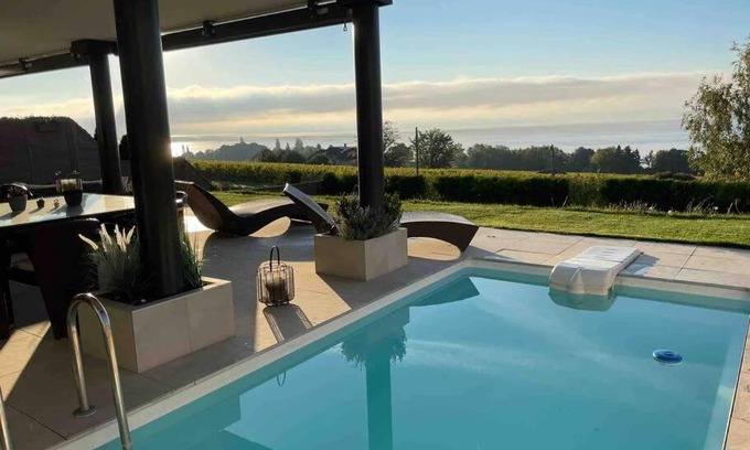 Appart 100m² à 10 min à pied de la plage de Rolle in Perroy features accommodation with free WiFi, 26 km from Lausanne Railway Station, 27 km from Palais de Beaulieu and 36 km from PalExpo. This apartment has a private pool, a garden and free private parking. This air-conditioned apartment has 2 bedrooms, a flat-screen TV, and a kitchen with a fridge and an oven. Towels and bed linen are offered in the apartment. United Nations Geneva is 37 km from the apartment, while Gare de Cornavin is 38 km from the property. The nearest airport is Geneva International Airport, 37 km from Appart 100m² à 10 min à pied de la plage de Rolle.