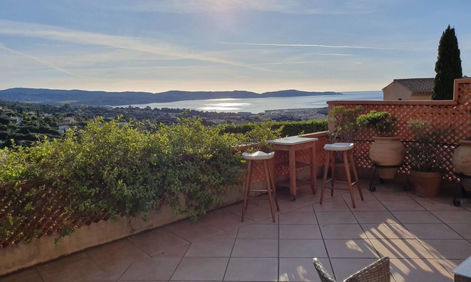 A 50sqm terrasse with 180deg. free view on the sea and the "Maures" montains really magic !!