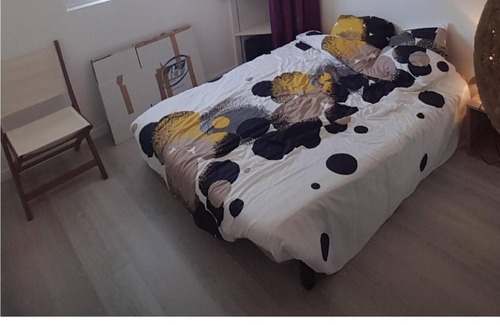 * T1 bis composed of a living room with small kitchen, 1 bedroom, 1 wc, 1 shower room. Individual equipment: table & chairs, cupboards, desk, Sofa (bed for the third person), electric hob, fridge, microwave, Double bed, Washer & dryer shared.