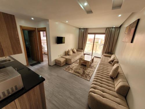 Offering a garden, Appart-Hotêl Résidence TITANIC features accommodations in Tiznit. The guest house offers a sun terrace, a 24-hour front desk, and free Wifi is available throughout the property. Each unit comes with a fully equipped kitchen with a dining table, a flat-screen TV with satellite channels, and a private bathroom with bidet and slippers. A microwave, a fridge, and stovetop are also offered, as well as a kettle. At the guest house, the units include bed linen and towels. Agadir–Al Massira Airport is 54 miles from the property.