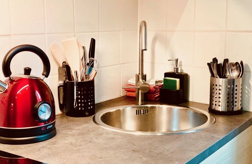 As you settle into this 1-bedroom rental, you'll find a sofa bed and a desk. Connect to the free WiFi, or get cozy in front of the Smart TV. Bathroom amenities include a hair dryer, towels, and toilet paper. The kitchen is equipped with a stovetop and a refrigerator, as well as a coffee maker, an electric kettle, and a microwave. And because there's access to laundry facilities, you can go a bit lighter on your packing. Other amenities include bed sheets, heating, a desk chair, and a dining table.