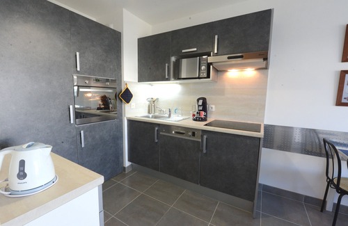A Kitchen or everything is simple, fully equipped to new, with dishwasher and washing machine,