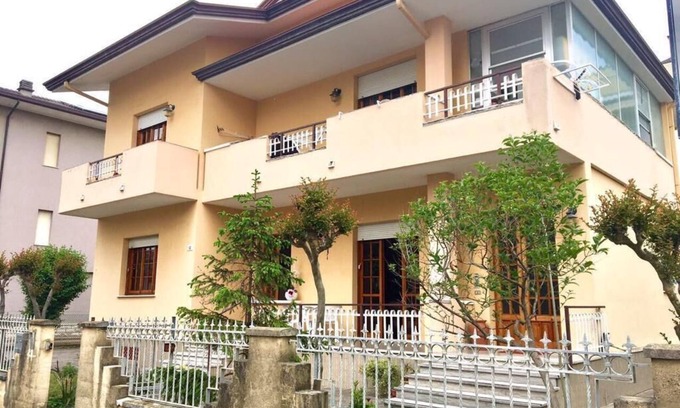 Elegante e ampio appartamento situato a piano terra di una villetta indipendente. L’ appartamento è composto da 3 camere da letto che ospitano fino a 8 persone, 2 bagni, lavatrice, angolo giardino e parcheggio riservato.