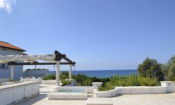 Villa Apollonia is a white one-story villa surrounded by its own garden. Only a row of trees will separate you from the beach and the sea. The long beach is public, with golden sand and is enlightened by the sun from the morning to the sunset on the sea! During the summer, if you would like to, you will be able to take advantage of the services provided by several seaside resorts.