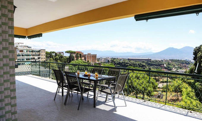 Large and bright apartment with panoramic terrace, situated near Poggio di Capodimonte Park.The apartment, located on the fourth floor of a mansion with an elevator, consists of two bedrooms, each with a queen-size bed, a bathroom with tub and one with shower, a large living room with sofa, TV and dining table, and a kitchen equipped with dishwasher, microwave, kettle and toaster. Wi-fi, air conditioning, heating and a washing machine will be available to guests.The jewel of the apartment is the huge terrace with a breathtaking view of Mount Vesuvius, Poggio di Capodimonte Park and the Gulf of Naples. Thanks to the table, the chairs and a porch swing, guests can relax and enjoy great meals in the open air. Cot and high chair available upon request, at an extra costof 25€ per stay, per item.*Upon arrival or a few days before arrival it may be required to pay a tourist tax, which varies according to local regulations. You will find your reservation details within the Guest Area of Wonderful Italy.“When you go to Naples you cry twice: when you arrive and when you leave”, people say. Naples is a unique city, to experience by walking through the alleys, smelling the scent of gastronomic delicacies in the air and admiring its rich artistic and monumental heritage. Naples is at the origin of a peculiar culinary tradition for its famous Neapolitan pizza, and the art of its pizza makers has been declared an intangible Heritage of Humanity by UNESCO.Walking through Spaccanapoli, the street that cuts the city in half, you will cross its millenary history thanks to the presence of ancient palaces and churches, such as the Cathedral of Naples and the Maschio Angioino. If there is a symbolic place of Naples, this is Piazza del Plebiscito, today a symbol of the new "Neapolitan Renaissance" where tourists come to admire its grandeur and its two jewels: the neoclassical colonnade of the church of San Francesco di Paola and the Palazzo Reale. Today it is also possible to visit "the underground city", or the so-called "womb of Naples", used by the Neapolitans as a refuge during the bombings, where tourists can cross the Greco-Roman aqueduct, the air-raid shelters and finally visit the Museum of the War.Not to be missed is San Severo Chapel which houses the sculpture of the Veiled Christ, one of the most fascinating and mysterious works that can be seen in Naples, the result of the talent of Giuseppe Sanmartino.Naples Capodichino airport is located only 7,5 km away from the apartment.
