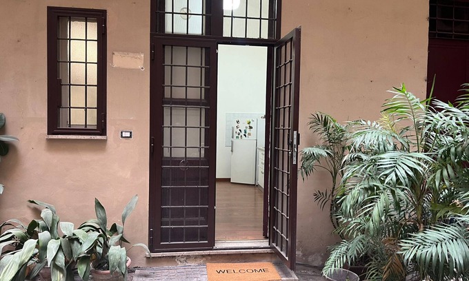 Al piano terra di un edificio di fine 800, con accesso per disabili, immerso nella corte verde del palazzo, l'appartamento è composto da una cucina, un bagno con doccia, un salotto con divano letto ed una stanza matrimoniale soppalcata. Ideale per lunghi soggiorni e per visitare il centro storico sia a piedi che con i mezzi pubblici.