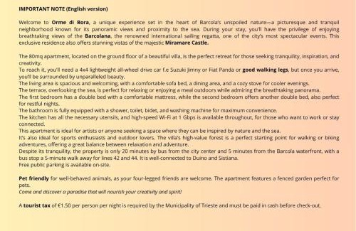 This Appartamento in villa con terrazza vista mare - pet friendly in Trieste is well equipped and has all facilities that have been listed below. Please note that these details were shared to us by booking.com for the listed “Appartamento in villa con terrazza vista mare - pet friendly”. We solely rely on their shared details and are regarded as “accurate”. If you have any concerns about the information or accuracy describing this Apartment, please let us know.