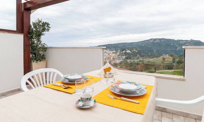 Nice apartment with mezzanine in one of the highest areas of Nuoro. The apartment is well-kept and welcoming, it consists of a kitchen complete with coffee machine and kettle, a large living room which leads to the terrace overlooking the city and the mountains, as well as a view of the Nuraghe Tanca Manna a few hundred meters away ; on the mezzanine we find a relaxation corner with a sofa that can become a comfortable sofa bed large 120 cm, the bathroom is complete with shower and washing machine, and the bedroom with a very spacious double bed. Excellent as a starting point to discover the hidden treasures of the Nuoro area and visit all the attractions that this wonderful area offers. Come and visit us, You're Welcomely!. Extra: AIR CONDITIONING Free of charge , BATH LINEN Free of charge , BED LINEN Free of charge , HEATING Free of charge , LINEN AND TOWELS Free of charge , PRIVATE CAR PARK Free of charge , WASHING MACHINE Free of charge