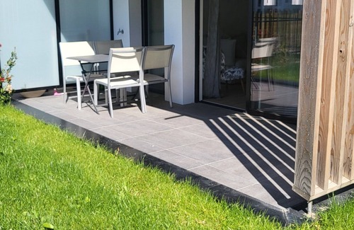 - New 80 m² apartment with garden, quiet, walking distance to port, stadiums and shops