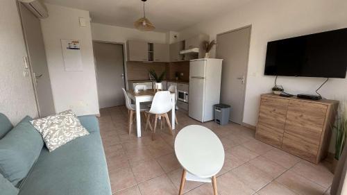 Appartement 2 pièces - Gruissan GN190-015 is located in Gruissan, just 22 miles from Abbaye de Fontfroide and 24 miles from Fonserannes Lock. With free private parking, the property is a 16-minute walk from Grazel and 18 miles from Reserve Africaine de Sigean. Mediterranee Stadium is 29 miles from the apartment. The air-conditioned apartment is composed of 1 separate bedroom, a living room, a fully equipped kitchenette with a dishwasher and fridge, and 1 bathroom. A TV is offered. The accommodation is non-smoking. The apartment conveniently has an outdoor pool. Saint-Nazaire Cathedral is 26 miles from Appartement 2 pièces - Gruissan GN190-015, while Beziers Arena is 27 miles from the property. Beziers Cap d'Agde Airport is 32 miles away.