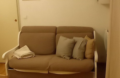 It consists of a double bedroom, a large entrance hallway containing a sofa convertible into a double bed and a kitchen with a dining room with a second double sofa bed, bathroom with shower and separate toilet.
