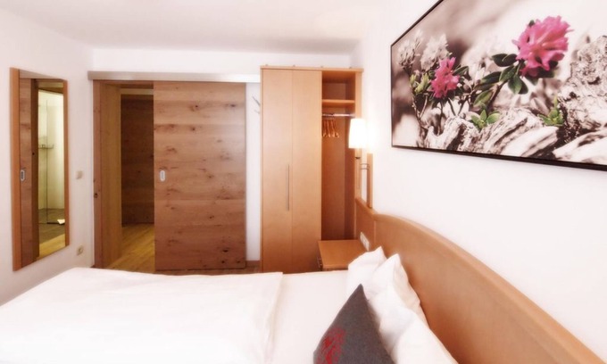 Apartment Almrausch for 2 to 4 persons (about 34 m²) Features: 1 bedroom with satellite TV with radio, built-in safe, separate balcony, fully equipped kitchen with induction stove and oven, dishwasher, refrigerator, coffee maker, kettle, microwave, toaster, Crockery, cutlery and cooking utensils Living room with dining table and comfortable seating area, cuddly sofa bed with mattress for 2 persons and satellite TV with radio. Free Wi-Fi Modern bathroom with shower, hair dryer, make-up mirror and towel dryer. Separate toilet