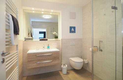 Appartement "Aquamarin" mit Penthouseflair - Oase am Haff offers accommodations in Garz-Usedom, 8.8 miles from Baltic Park Molo Aquapark and 9.1 miles from Zdrojowy Park. This apartment offers free private parking, an elevator, and free Wifi. Ahlbeck pier is 7.1 miles away and Usedom island nature park is 12 miles from the apartment. Offering a balcony and sea views, the spacious apartment includes 3 bedrooms, a living room, cable flat-screen TV, an equipped kitchen, and 2 bathrooms with a shower. For added convenience, the property can provide towels and linens for a supplement. The accommodation is non-smoking. Guests can make the most of the warm weather with the property's barbecue facilities. A children's playground is also available for guests at the apartment. Świnoujście Train Station is 10 miles from Appartement "Aquamarin" mit Penthouseflair - Oase am Haff, while Baltic Hills Golf Usedom is 4.5 miles from the property. Heringsdorf Airport is a few steps away.