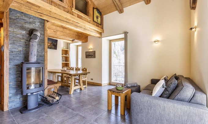 This luxurious apartment, in the village of Montroc, is a stylish conversion of a traditional farmhouse. It is close to skiing and all the amenities you might want for a perfect holiday all year round.