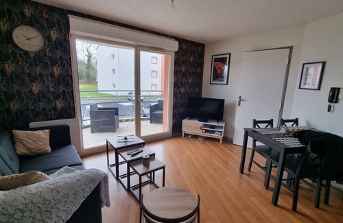 Profitez d'un logement élégant et avec un emplacement central: 5min en voiture de la gare LGV de Guingamp et à 200m de la RN12: à 1h15 de Brest et Rennes.