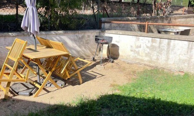 Vous avez également accès au petit jardin avec table, chaises et petit barbecue au charbon.