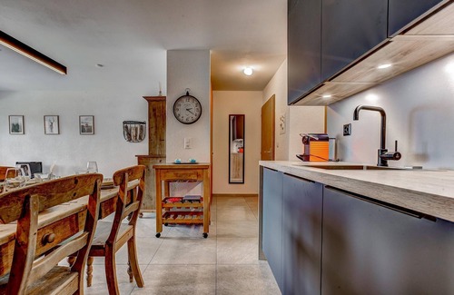 EquipmentIn the small open kitchen you will find all the basics: a fridge, oven, 3-ring hob, microwave, dishwasher, kettle, toaster, Nespresso machine, electric filter coffee-machine, electric mixer stick, plus fondue and raclette sets for a traditional Swiss evening here in the mountains. The central heating radiators in each room can be individually adjusted to your needs. There is a shared (coin-operated) washing machine and dryer available in the building.
