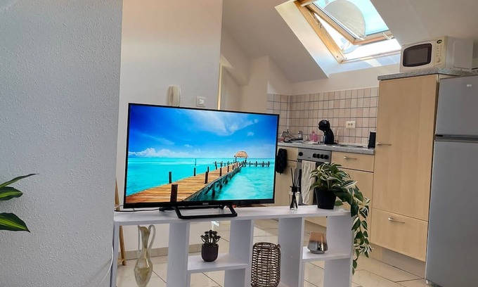 Nestled in Erstein, this 1-bedroom, 1-bathroom apartment brings it all within your reach. Fans of nature and the outdoors will love being 16 minutes by car from Taubergießen Nature Reserve and 34 minutes from Mont Sainte Odile. You'll easily make the 20-minute drive to Train Station Square or the 29-minute drive to Europa-Park.